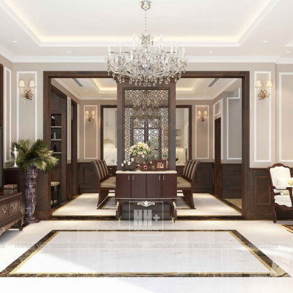 Công trình được thiết kế tổng thể từ kiến trúc đến nội thất theo phong cách tân cổ điển, với tông màu gỗ chủ đạo là tông màu óc chó làm tăng sự sang trọng cho công trình. Các kiến trúc sư của HH+ Architects đã khéo léo phối hợp màu sắc, đồ nội thất […]