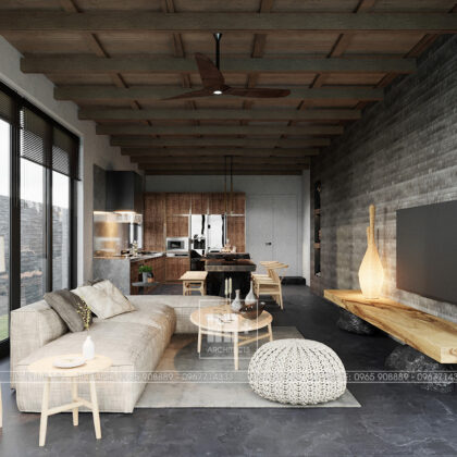 Thiết kế mang hơi hướng mộc mạc, gần gũi với thiên nhiên với những vật liệu thân quen như : bê tông, đá khối, đá hộc,thép hình.Tất cả lồng ghép với nhau theo từng mảng miếng rõ rang tạo nên 1 không gian ấn tượng. Loại hình: Nhà liền kề 4 tầng có sân vườn […]